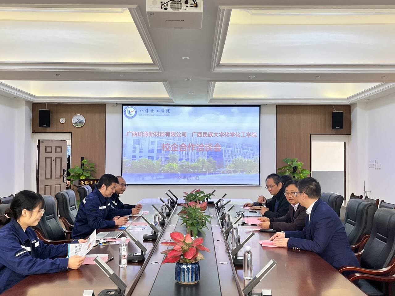 陈韬对m88在线客服近年来发展取得的优异成绩给予肯定,同时简要介绍了广西珀源新材料有限公司发展历程及人才需求现状。他表示,广西珀源新材料有限公司历来高度重视校企合作,希望双方聚焦未来深层次合作的同时,加强在“新材料”“新工艺”人才培养方面的合作,助力企业实现跨越式发展愿景。