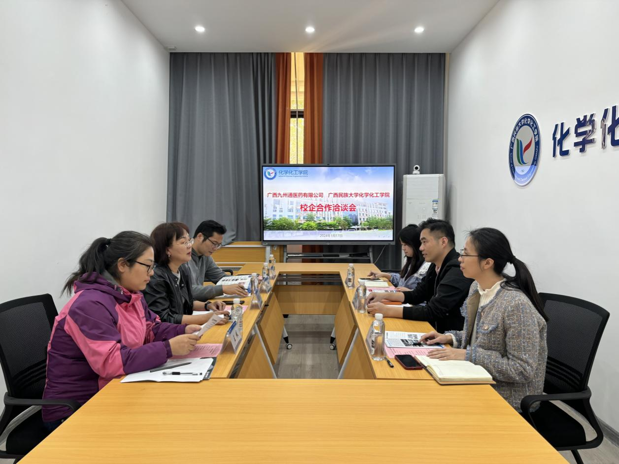 1月17日,manbet手机app下载在扬帆楼112会议室召开校企合作洽谈会。广西九州通医药有限公司行政管理部经理黎建良,企业管理部招聘负责人孙静、人才发展岗农丽佳到m88在线客服洽谈交流。学院党委副书记吴晟志,药学系主任孔凡栋、副主任王佩,辅导员苏元夫参加座谈会。会议由吴晟志主持。