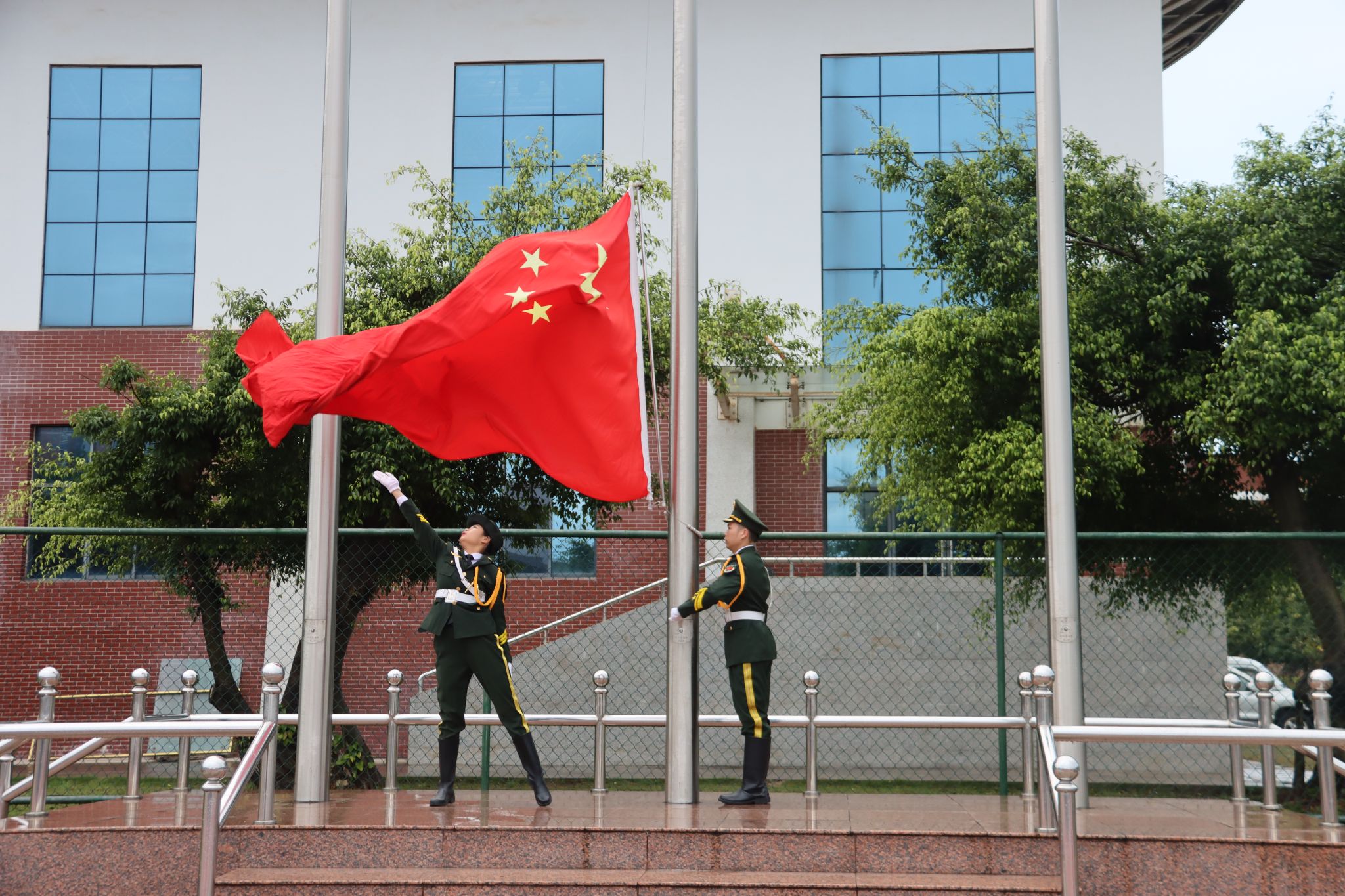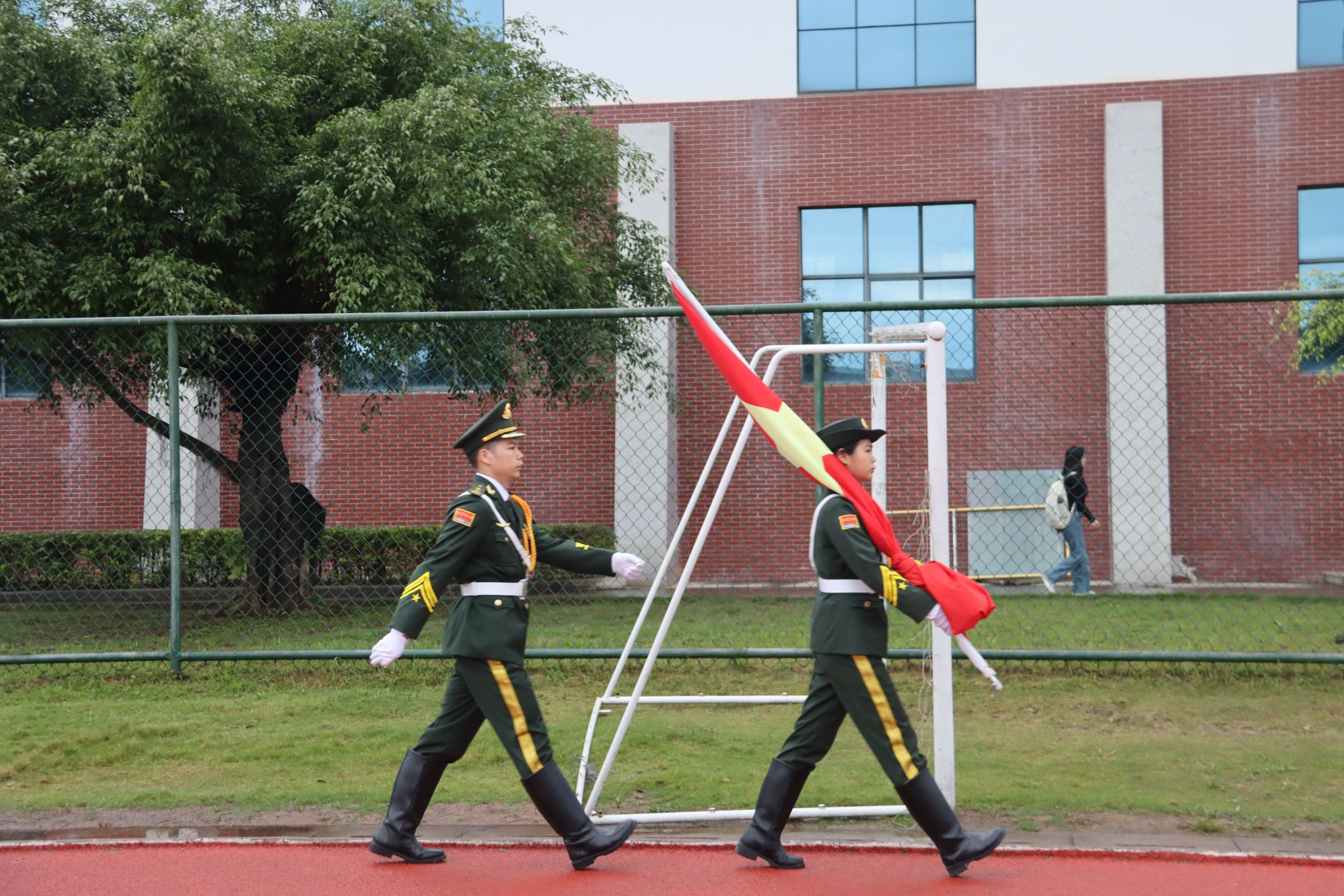 “全体立正!出旗!”旗手身姿挺拔,队列整齐,迈着铿锵有力的步伐走向升旗台,擎旗手振臂一挥,鲜艳的五星红旗伴随着雄壮的国歌冉冉升起,全体师生肃立凝视国旗,齐唱国歌。