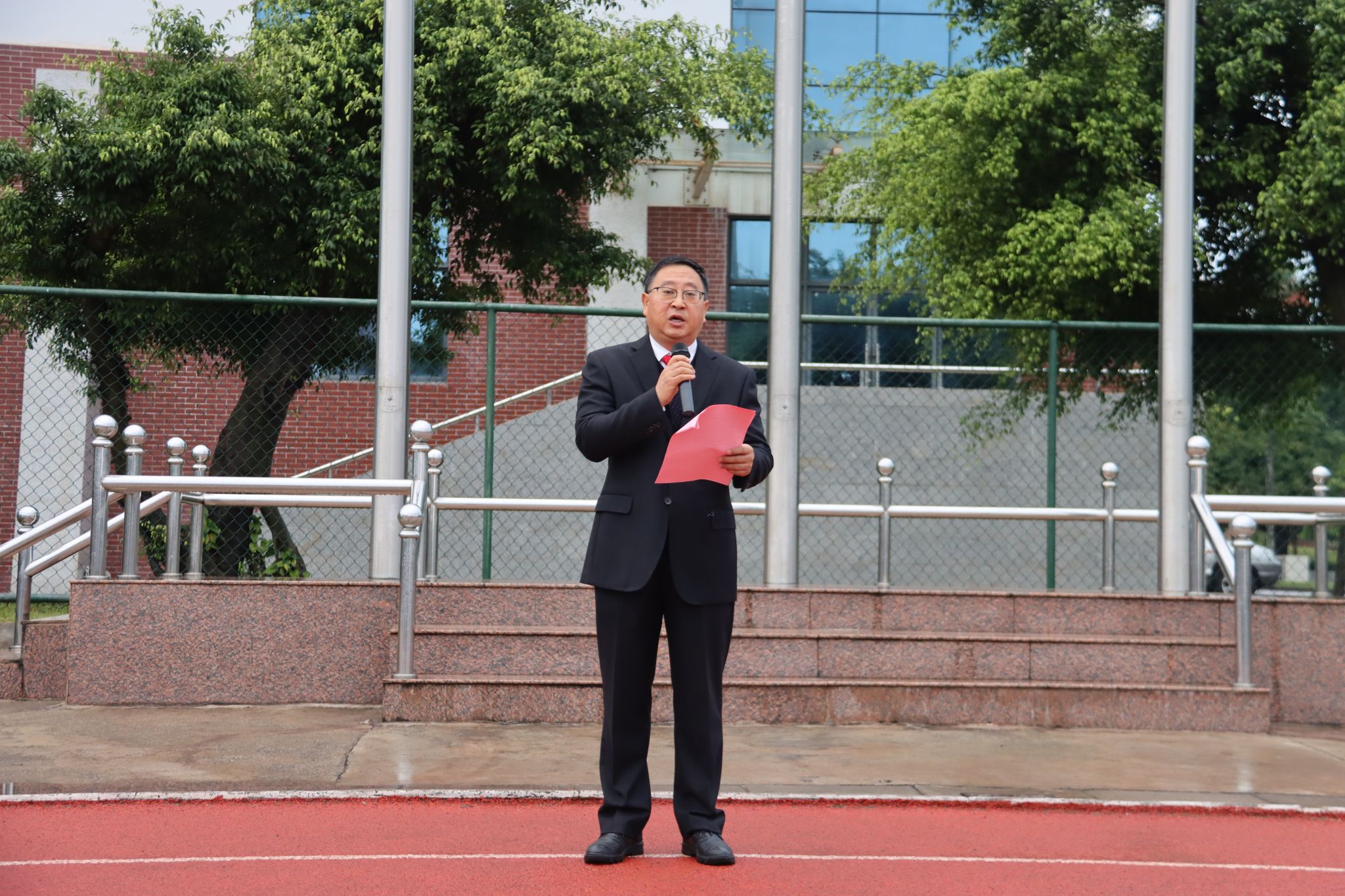 升旗仪式结束后,两名学生代表进行了朗诵。谭学才发表讲话,他向全体师生员工表达了新学期诚挚的问候和美好的祝福,接着对上学期的成就和不足进行了总结,鼓励同学们要肩负起时代赋予的使命,努力学习,为实现中华民族伟大复兴的中国梦贡献自己的力量。