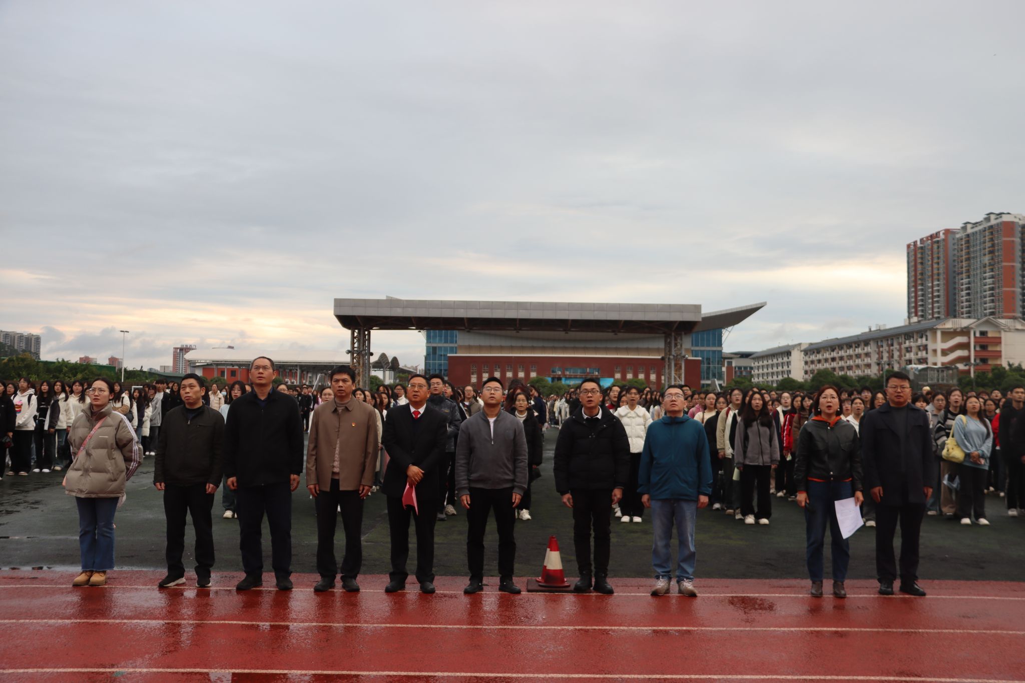 3月11日上午,m88在线客服在思源湖校区李宁田径场隆重举行新学期升旗仪式。学院党委书记黄钦,院长谭学才,党委副书记吴晟志,副院长刘绍刚、严军,团委副书记王文杰等教师与全院学生参加升旗仪式。仪式由吴晟志主持。