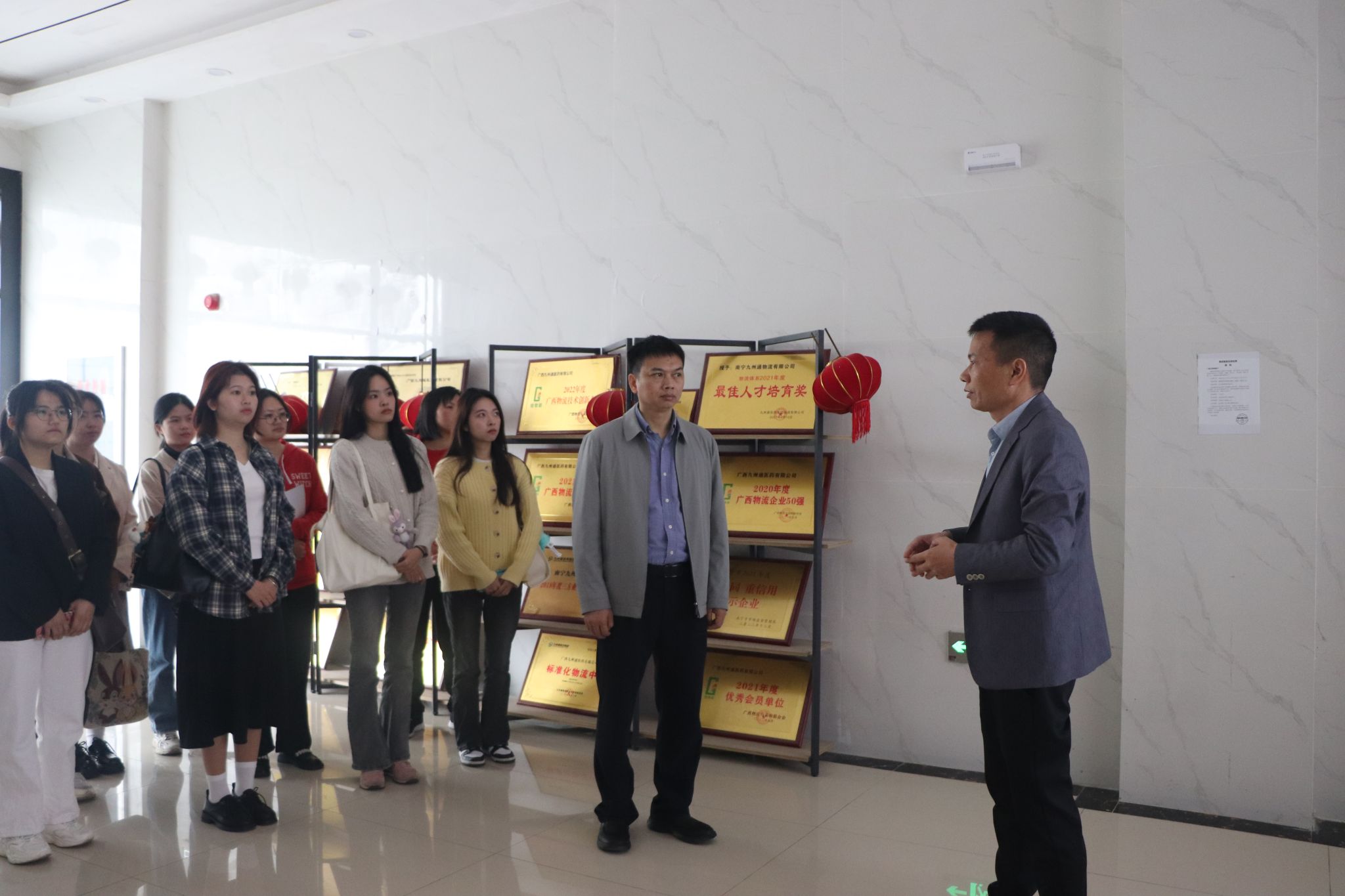 公司物流总经理宋长发对学院师生团队的到访表示热烈欢迎,并亲自引导同学们参观公司的现代物流中心,体验现代物流作业的智能化和高效化。随后,公司组织开展现场宣讲会,企管部经理邓容为同学们详细介绍了公司的业务储备计划。
