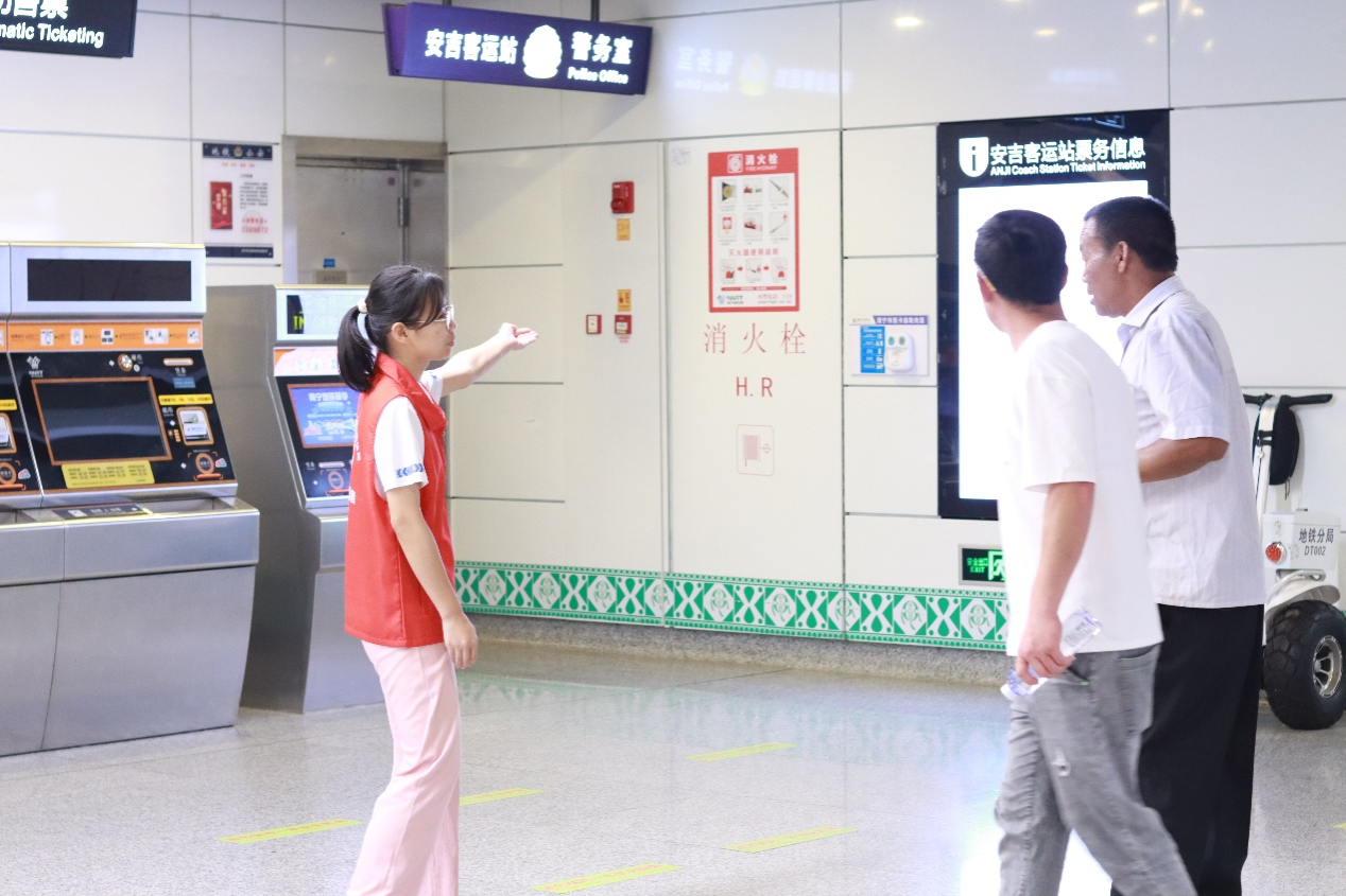 节日期间,地铁站内人流如织,志愿者们的身影活跃在每一个角落。他们分工明确,有条不紊:指引乘客快速找到出入口、耐心解答自动购票疑问、安检口协助检查行李……敬业的精神和热情的服务展现了m88在线客服学子的良好精神风貌。