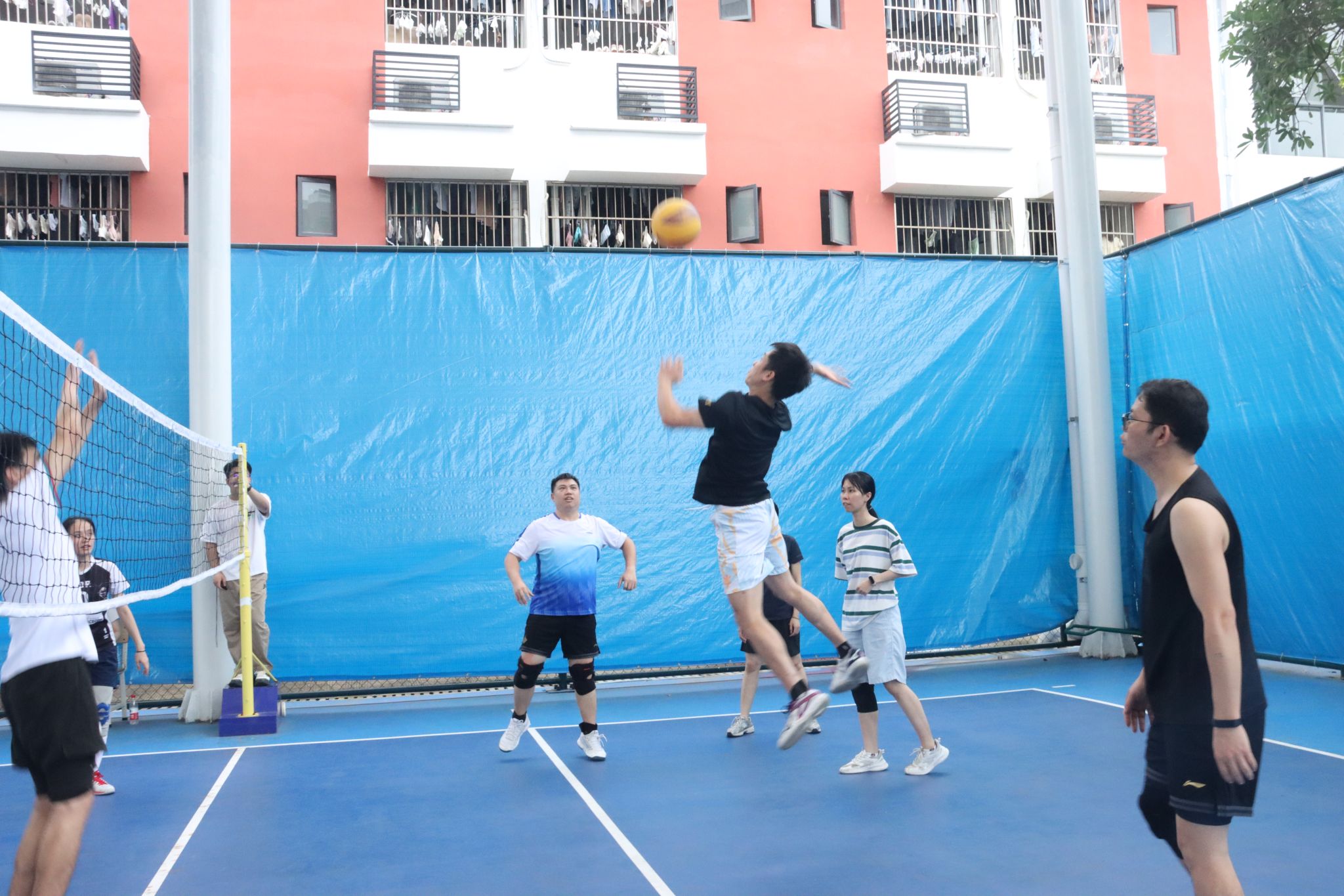 会后,严军带领校友们参观扬帆楼,并向校友们解释“扬帆楼”名字的由来。校友们从宣传栏上了解到学院近年来取得的各项成绩,共同见证了学院的最新成长轨迹。午后,学院组织在校师生和校友们进行了一场激情四射的气排球友谊赛。大家在运动场上挥洒汗水,再展校园风采和活力。
