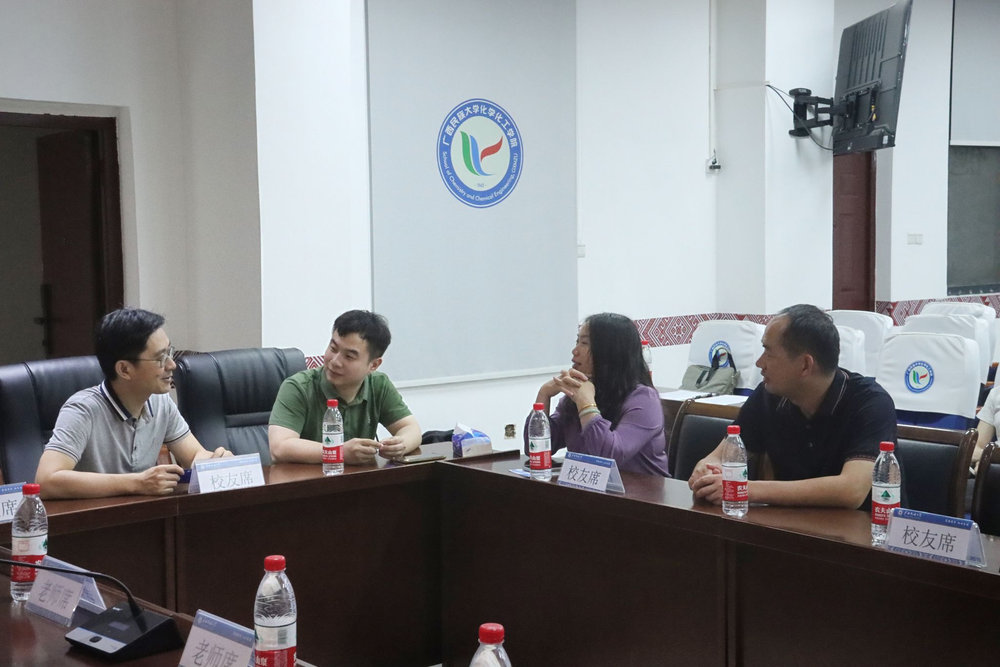 当天上午,学院在扬帆楼109会议室召开2024年校友座谈会。学院副院长严军、蓝丽红教授、辅导员施瑜及2004级环境工程校友韦尖、2017级制药工程校友宋岑源等8位校友参加活动。会上,严军代表学院对校友们返校表示热烈欢迎。接着,校友们一起观看学院宣传视频,在共叙校友情谊的欢乐氛围中,校友们依次发言,分享各自毕业后的工作生活情况,同时表达对母校未来发展的期望。