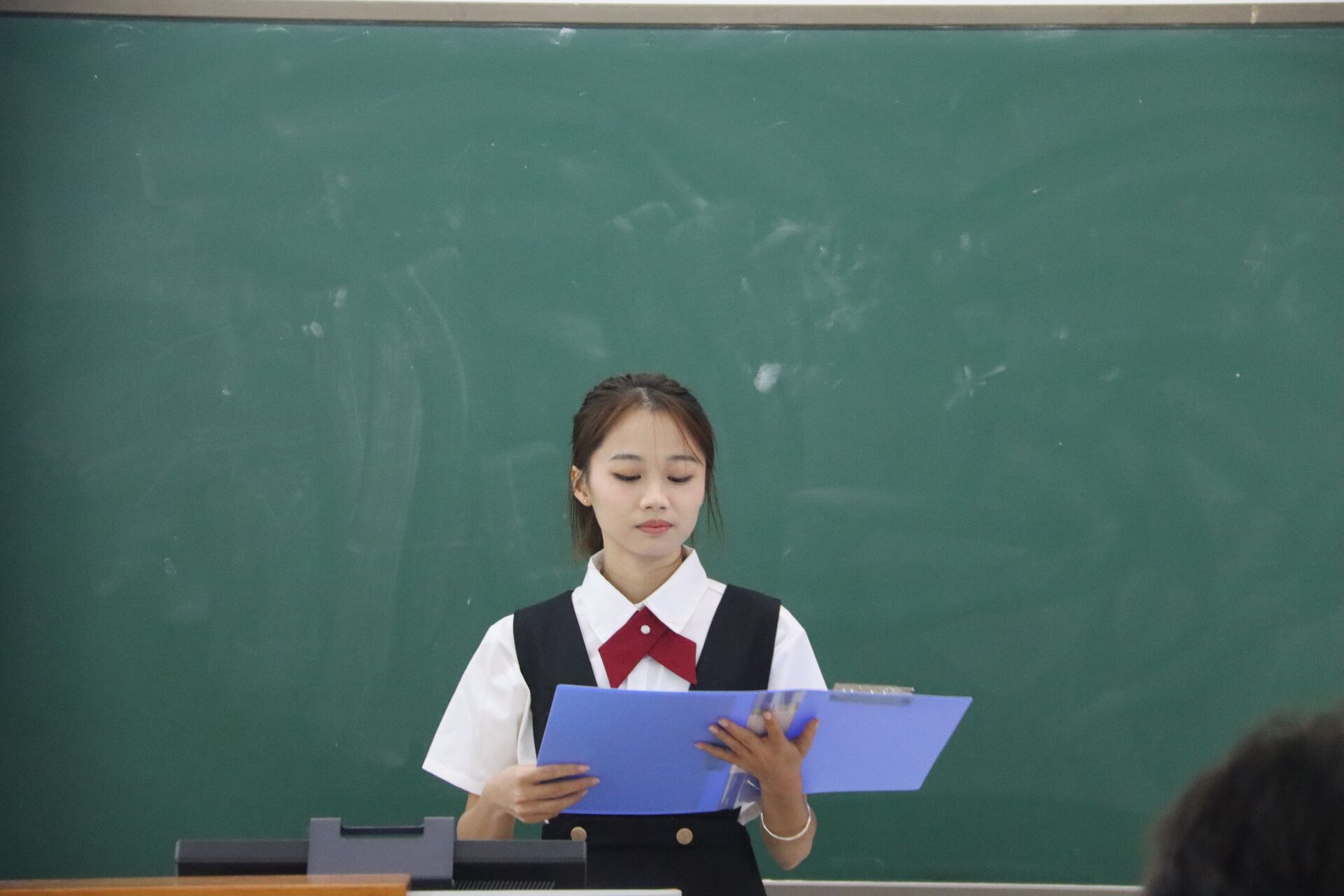 5月19日下午,为弘扬中华民族优秀传统文化,提高学生们的文化素养和诵读能力,manbet手机app下载在明德楼313教室举行第十七届校园中华经典诵读大赛。学院团委副书记王文杰、辅导员苏元夫、主席团成员任树权、秘书处黄柏铭以及朗诵团团长权能担任大赛评委。