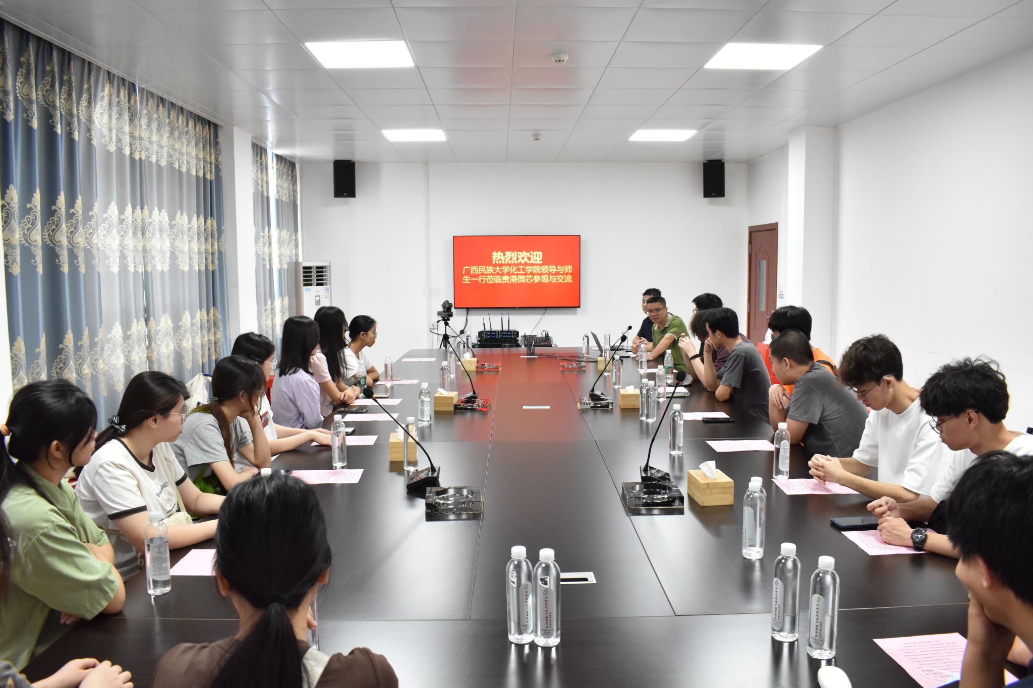 6月13日,学院辅导员施瑜和苏元夫带队到贵港市微芯科技有限公司开展访企拓岗促就业活动,贵港市微芯科技有限公司厂长卢畅吟等人接待并与m88在线客服一行展开座谈交流。