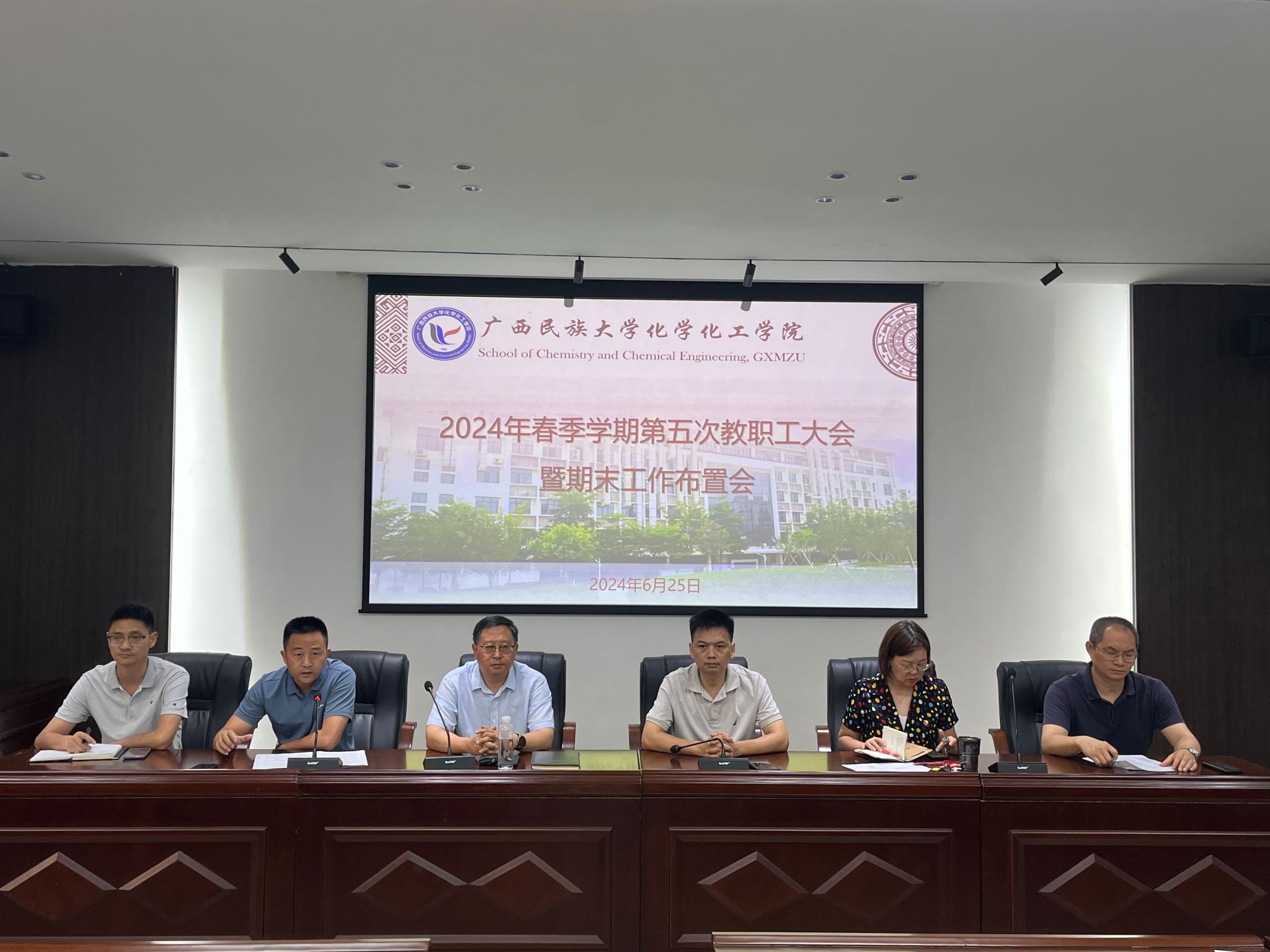 6月25日下午,manbet手机app下载在扬帆楼109会议室召开2024年春季学期第四次教职工大会暨期末工作布置会。学院党委书记黄钦,院长谭学才,副书记吴晟志,副院长刘绍刚、严军及全体教职工参加会议。