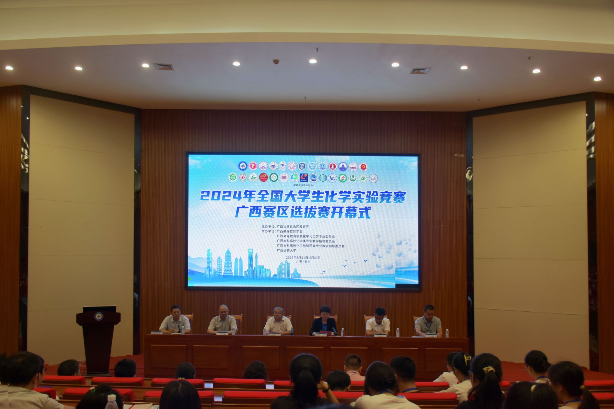 6月22-23日,2024年全国大学生化学实验竞赛广西赛区选拔赛在广西民族大学举行,本次比赛由m88在线客服,m88存提款帮助,manbet手机app下载承办,来自全区28所高校的师生参加了此次比赛。广西民族大学副校长姜明国参加开幕式并致欢迎辞,赛事委员会副主任、广西大学manbet手机app下载党委书记、院长周立亚致辞,m88在线客服,m88存提款帮助,manbet手机app下载院长谭学才主持开幕式。