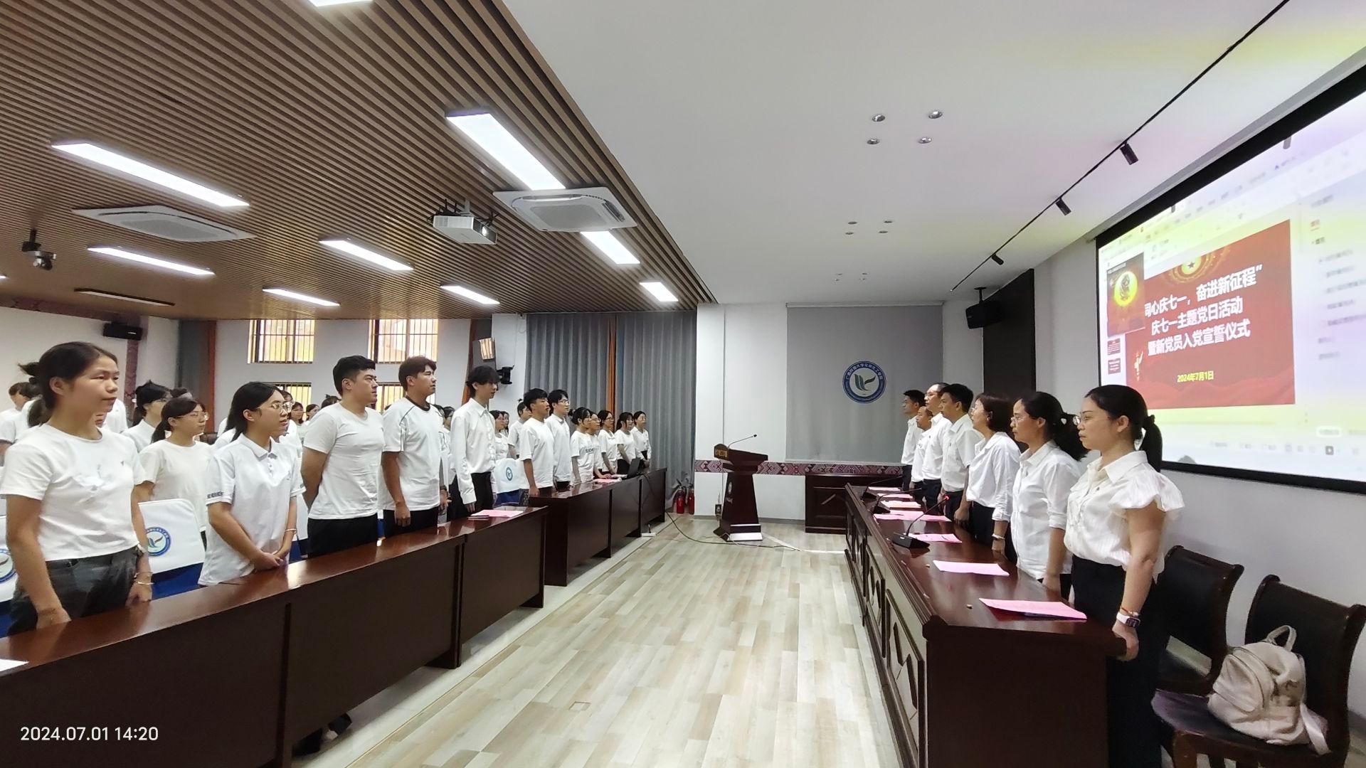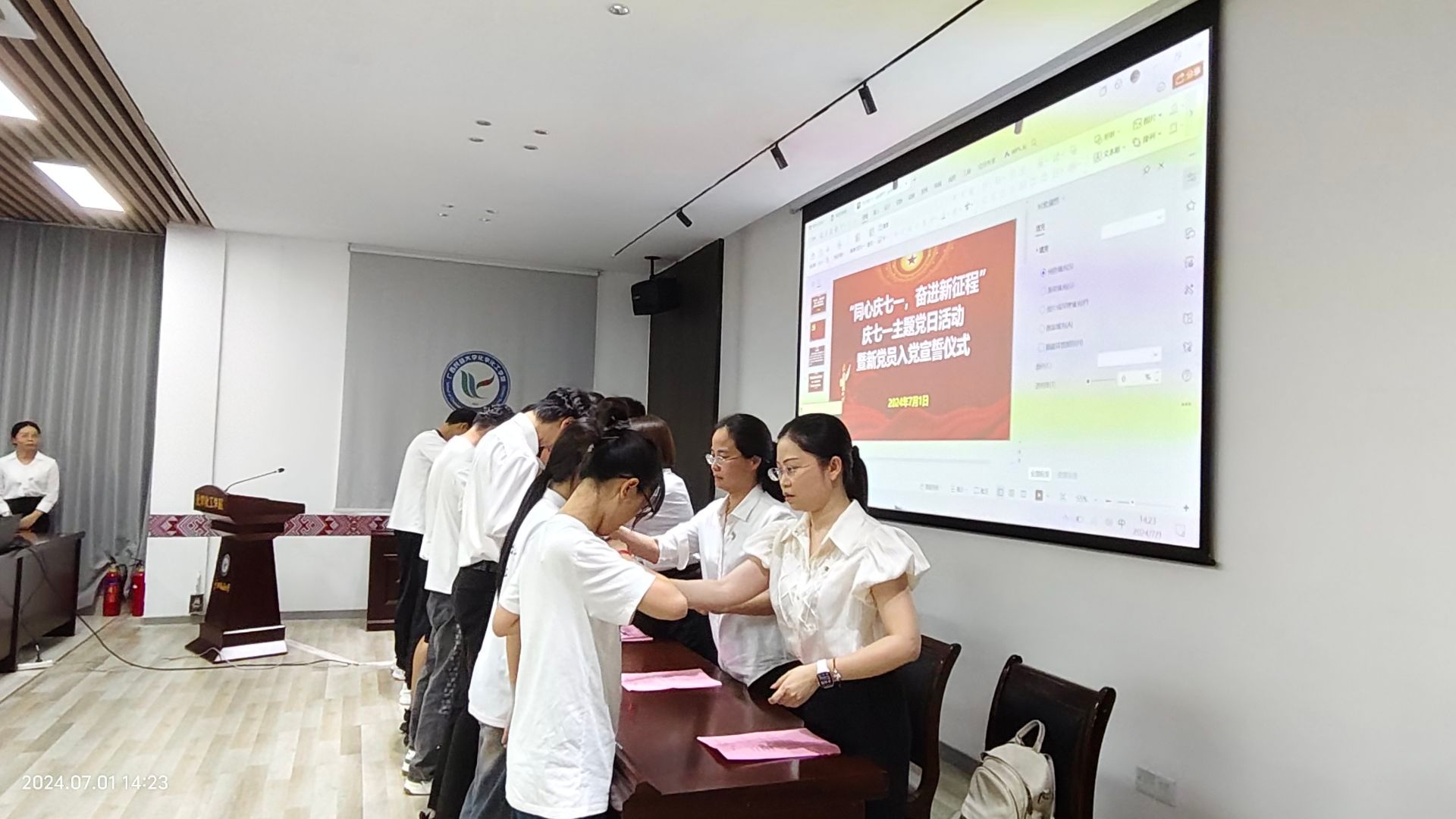 7月1日下午,m88在线客服在扬帆楼109会议室举行manbet手机app下载党委“同心庆七一,奋进新征程”主题党日活动暨新党员入党宣誓仪式。学院党委委员、师生党员代表以及新接收的预备党员参加仪式。