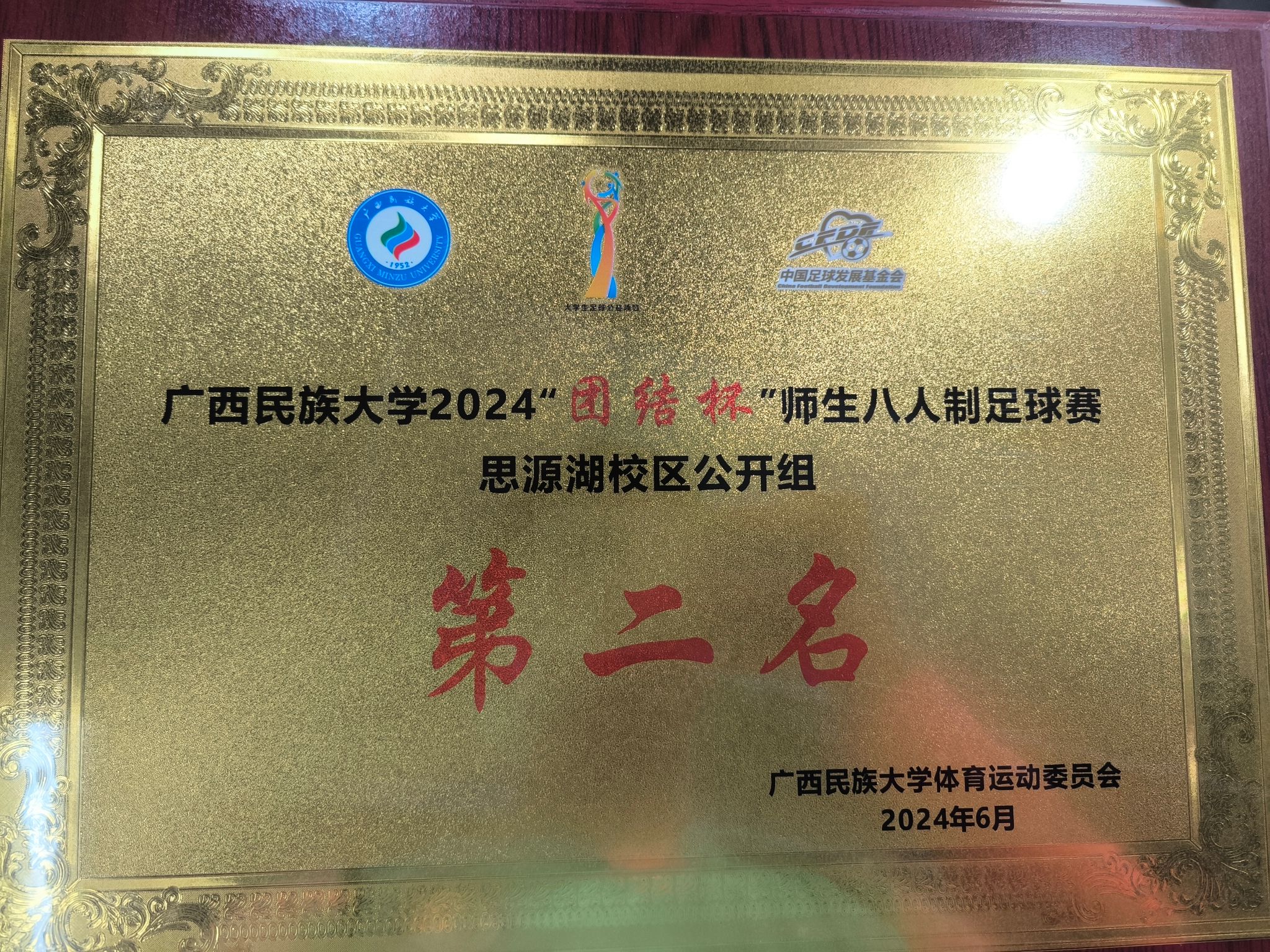6月18日下午,m88在线客服学生足球队参与广西民族大学举办的“团结杯”师生八人制足球赛事,与校教职工队进行公开组思源湖校区的冠军争夺战,并在思源湖校区公开组比赛中获得“第二名”的好成绩。