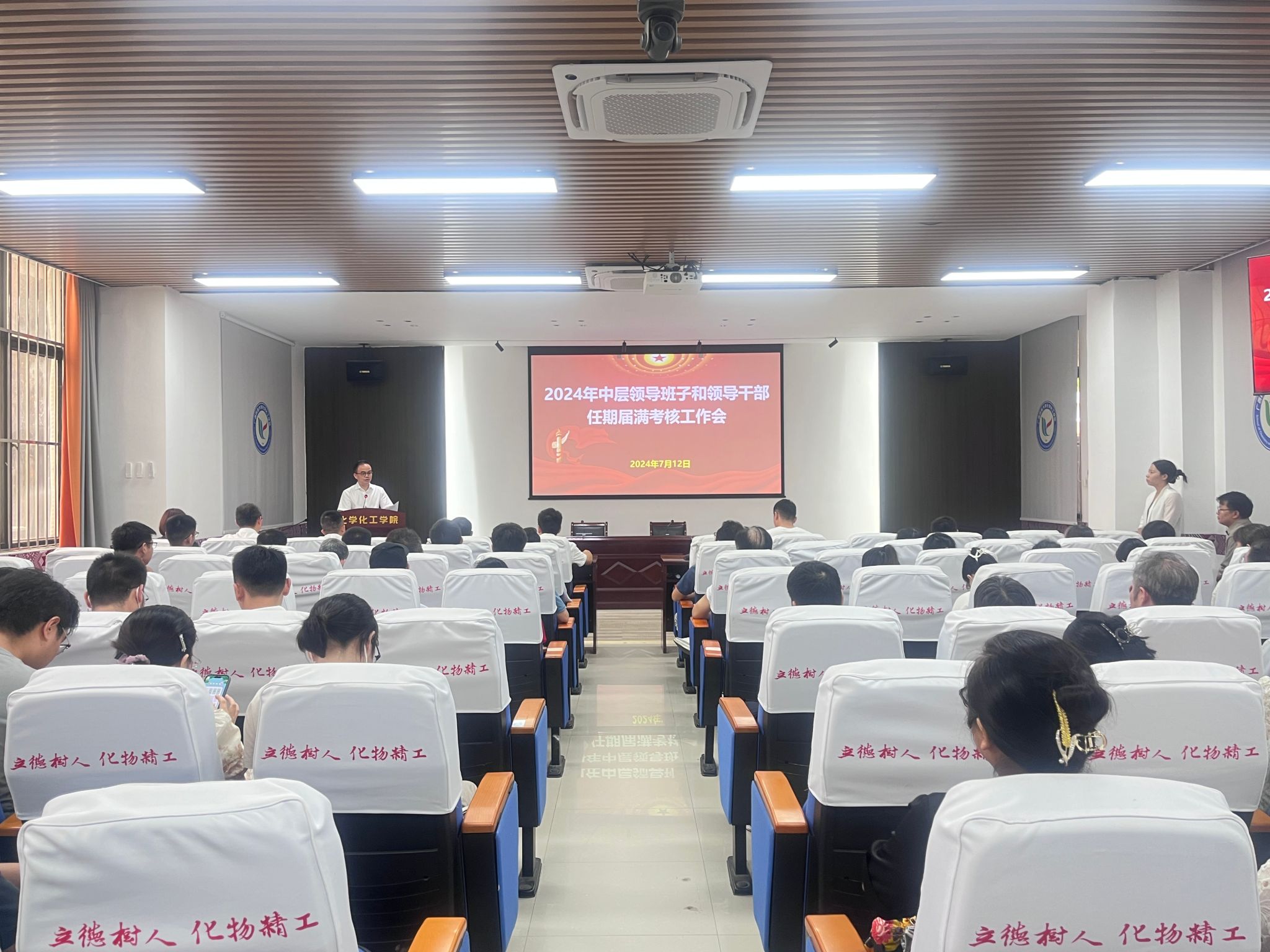 会上,谭学才代表学院领导班子做述职总结报告,对过去四年学院班子的工作进行了总结,他表示学院班子紧紧围绕学校下达的各项任务指标,做好各项工作。个人述职环节,黄钦、谭学才、吴晟志、刘绍刚、严军依次进行述职述廉汇报,查找个人存在的问题和不足。最后,与会教职工对学院领导班子与领导干部进行民主测评和评议。