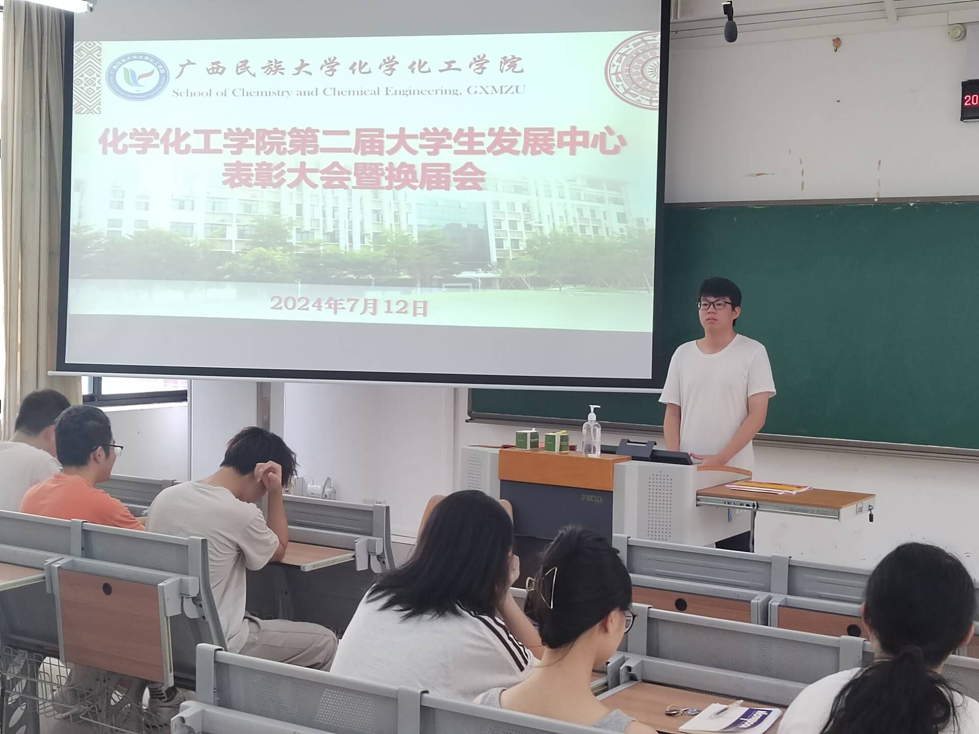 7月12日,manbet手机app下载在明德楼213教室召开第二届大学生发展中心表彰大会暨换届会,学院辅导员施瑜、苏元夫,大学生发展中心全体成员参会。会议由甘佑权主持。此次会议共四项议程,一是总结第二届发展中心工作;二是表彰先进;三是学生骨干代表发言;四是会议总结。
