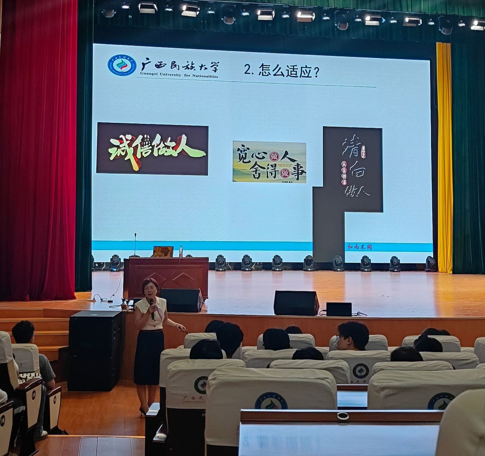 9月8日,吴晟志以“从适应到成长成才”为主题,为新生传授实用的大学适应策略,深入了解新生的困惑与需求,强调同学们在大学生活要学会做人做事做学问。吴晟志表示希望新生能够尽快顺利完成从高中到大学的角色转变,适应大学生活。