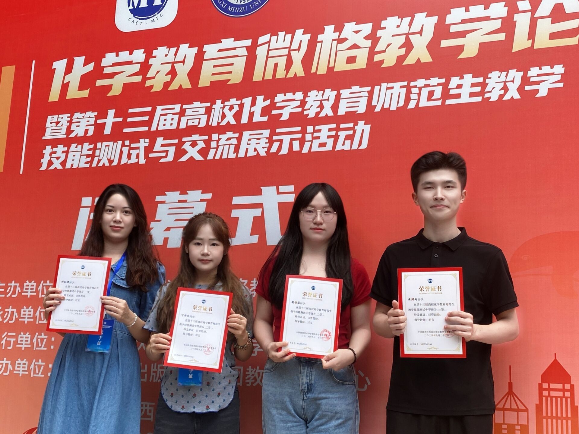 9月20—23日,2024年化学教育微格教学论坛暨第十三届高校化学教育师范生教学技能测试与交流展示活动在广西民族大学成功举办,m88在线客服化学师范专业学生喜获佳绩。其中,梁陈语、李佳蔓、陈锦书、尹照华、黄湖奇和傅虹婷6位同学获得一等奖,杨芯蕊、张苰语、胡佳慧、周幸、蒋雨琴和宁开秋6位同学获得二等奖,以上同学得到m88在线客服教师黄都和刘宝的指导。