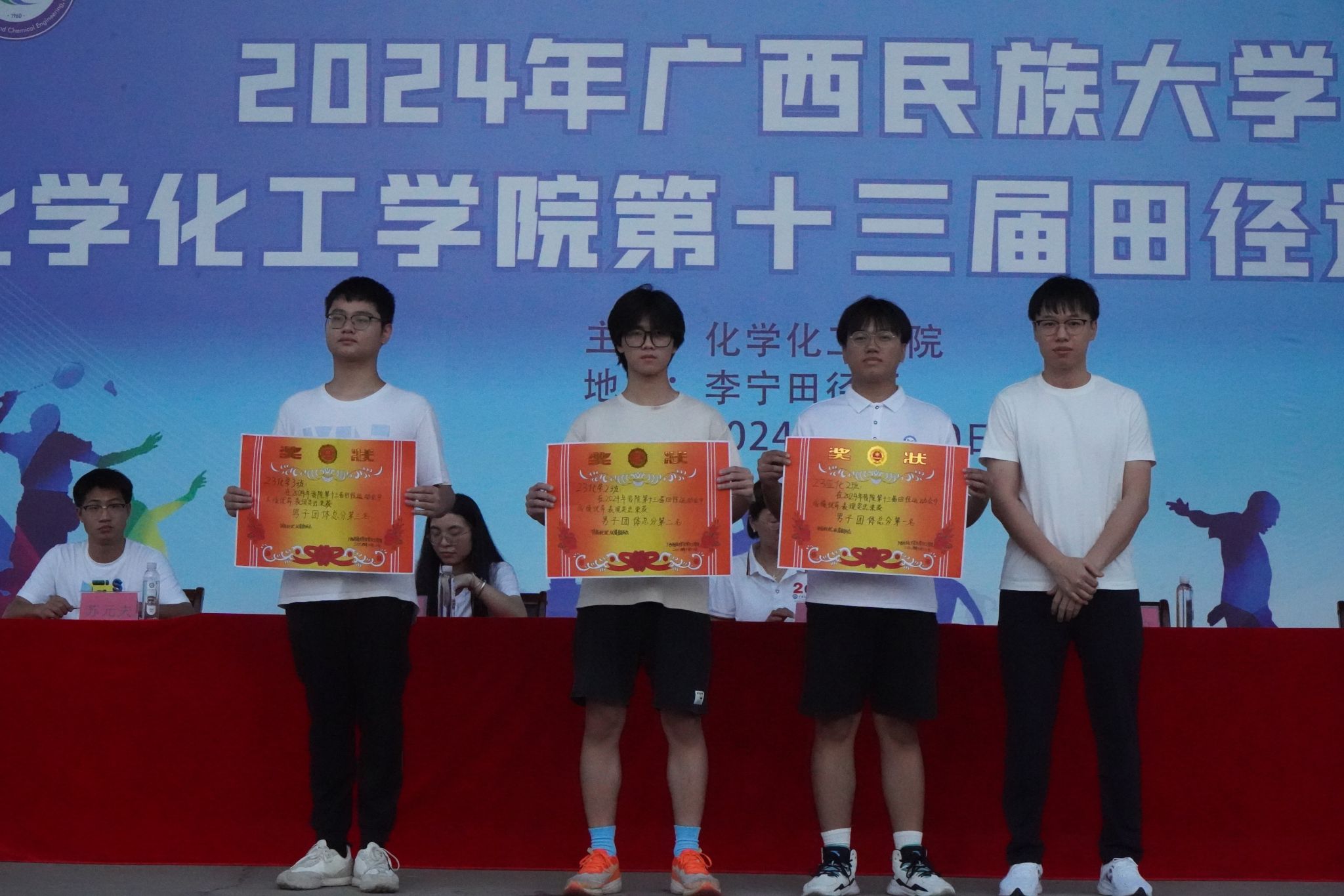 运动会结束,对各班级的表现进行颁奖仪式,2023级应用化学2班、2023级化学2班、2023级化学3班分别获得团体积分第一名、第二名和第三名的好成绩。
