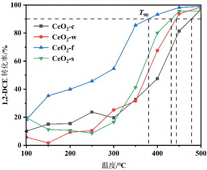 VOCs 本身是大气PM2.5的重要组成部分,还有部分 PM2.5由VOCs的二次污染转化而来。开展VOCs治理是消除雾霾的有效途径。项目团队通过研究材料形貌对典型CVOCs物质1,2-二氯乙烷催化降解性能,合成四种不同形貌二氧化铈,发现花球状二氧化铈相比其他3种形貌的二氧化铈具有更好的工业化应用前景。