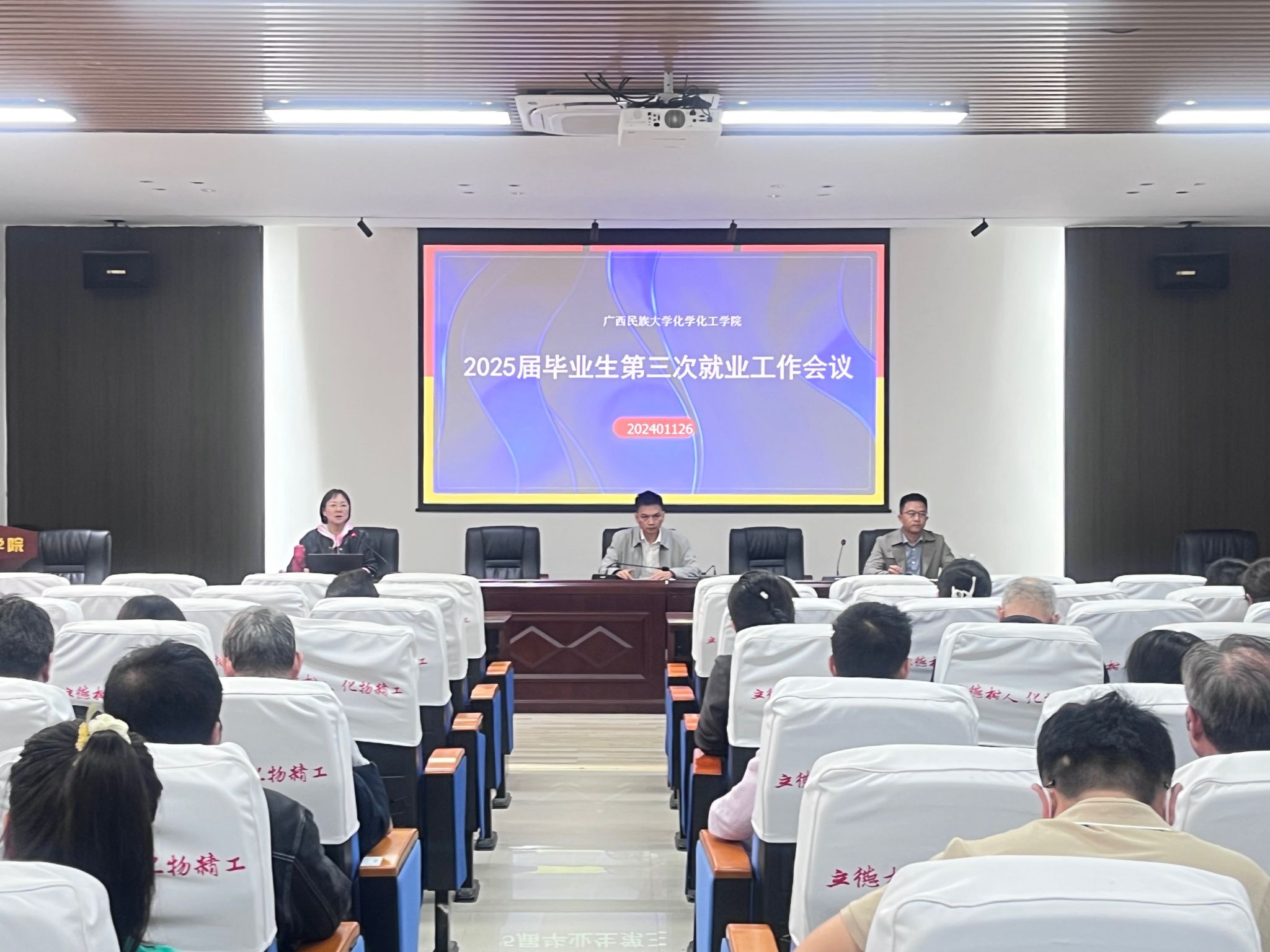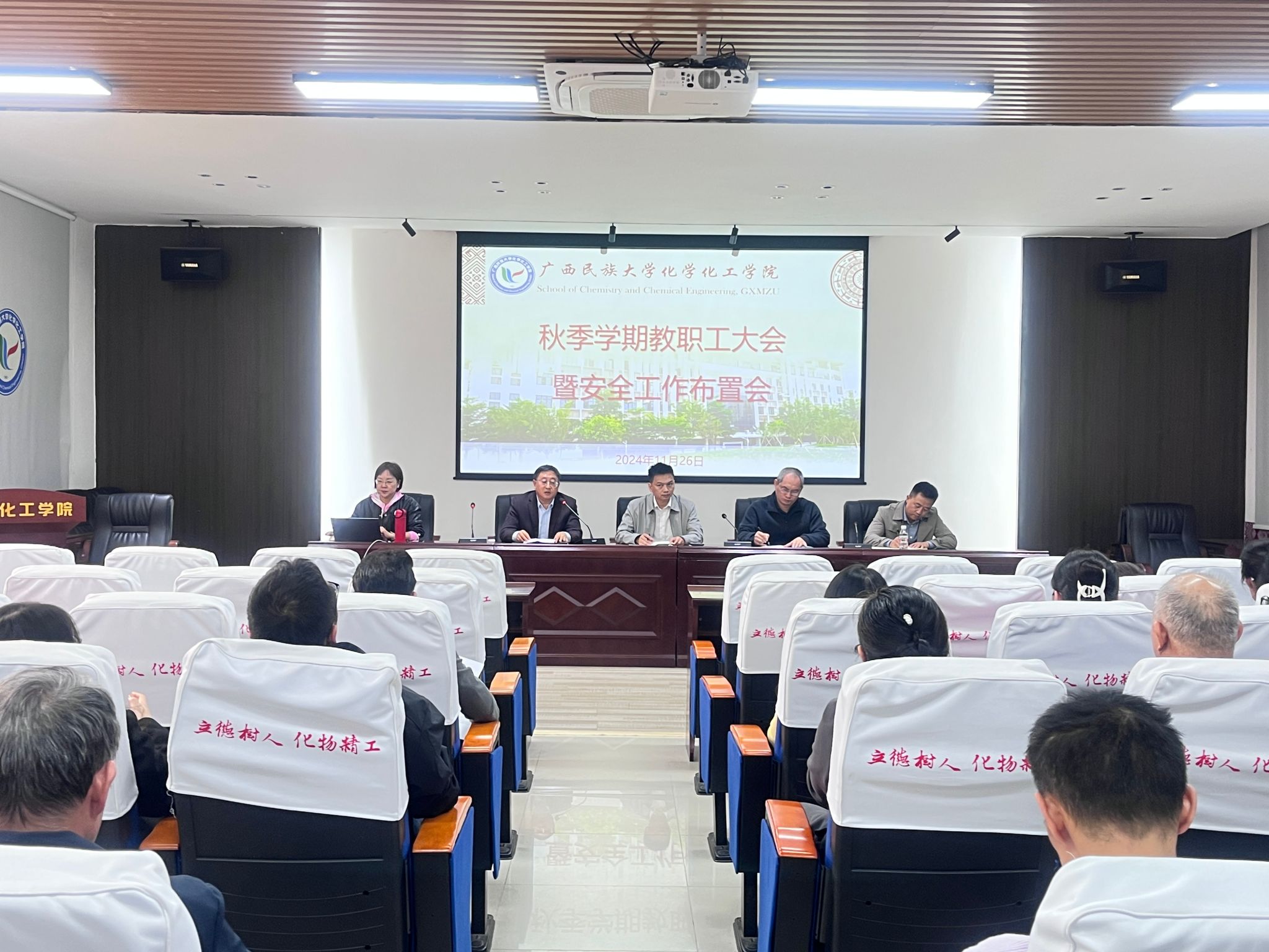 会上,谭学才通报本学期实验室安全问题。随后,各分管领导就学科建设、课程教学、2025届毕业生就业等方面部署工作。