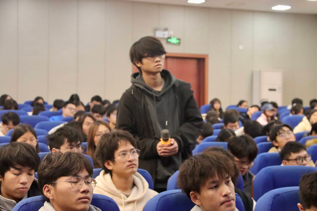 m88在线客服退伍师兄师姐在会上分享了参军经历和感触,为同学们答疑解惑,同时呼吁同学们响应国家号召,踊跃参军报国。