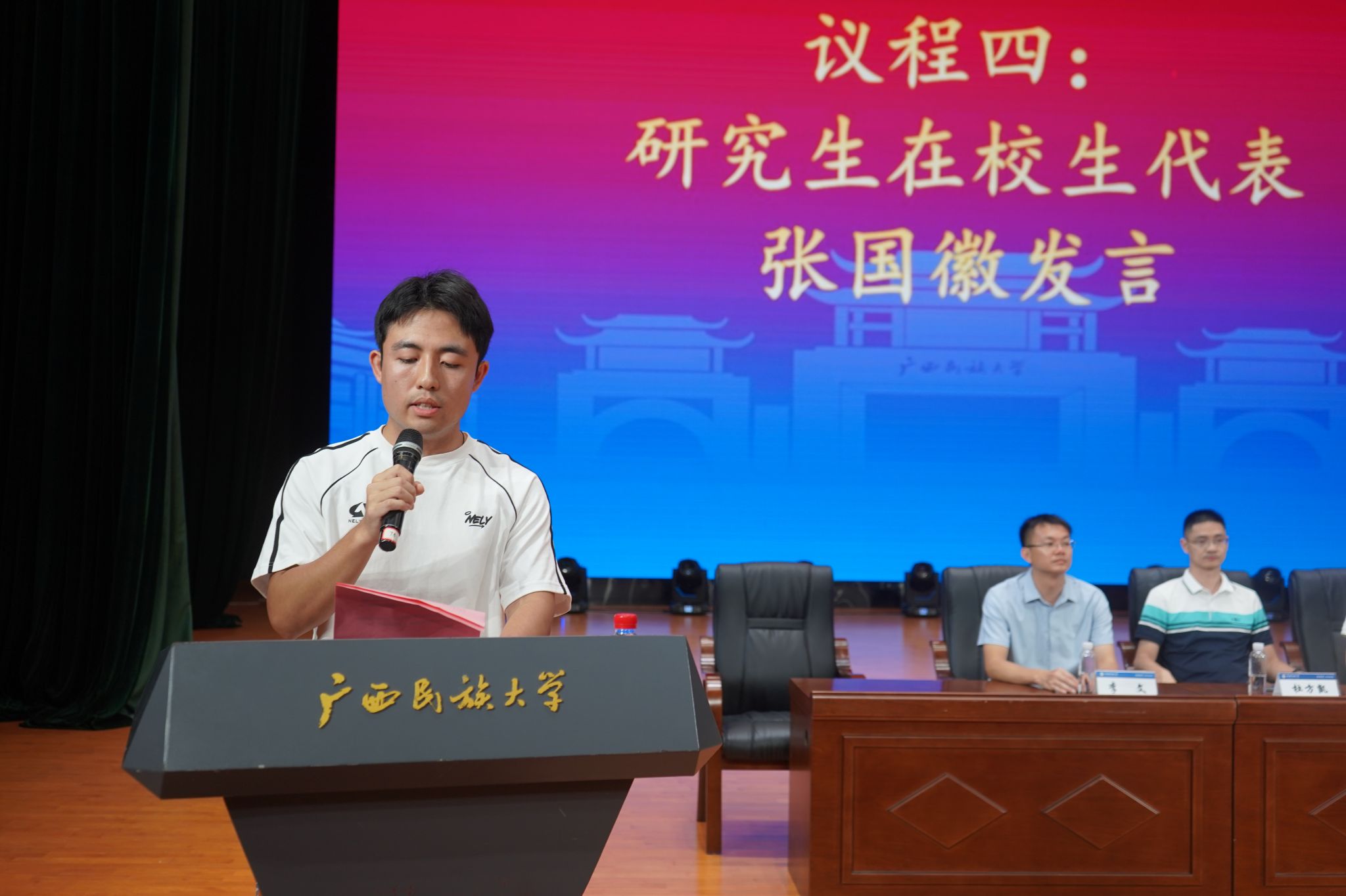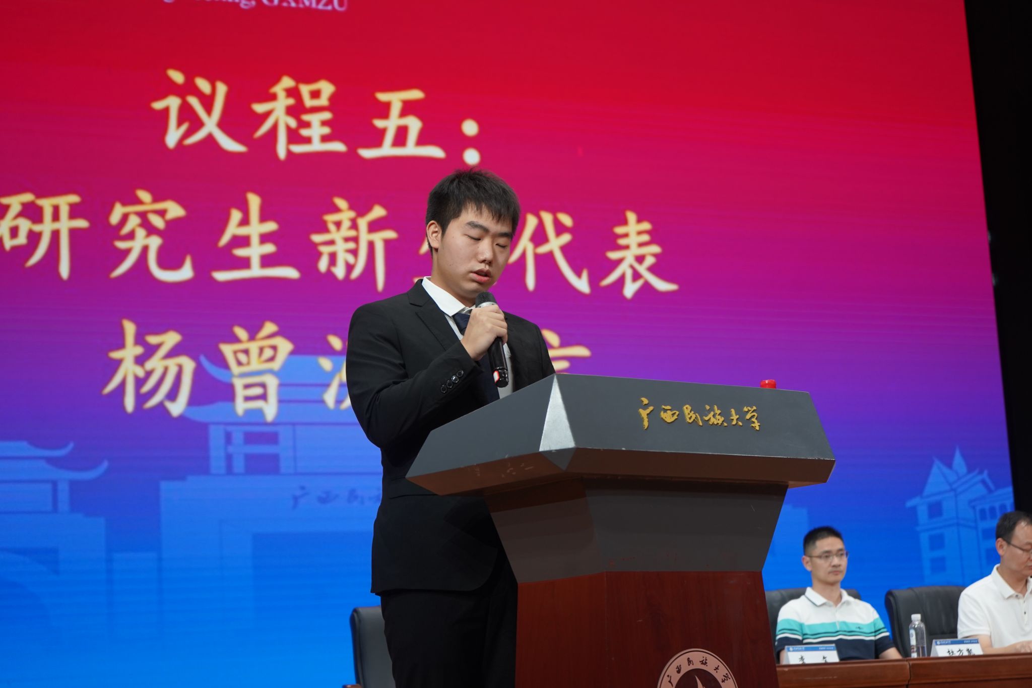 典礼开始前,歌曲《果敢》点燃了会场气氛。开学典礼在庄严的国歌下拉开序幕。