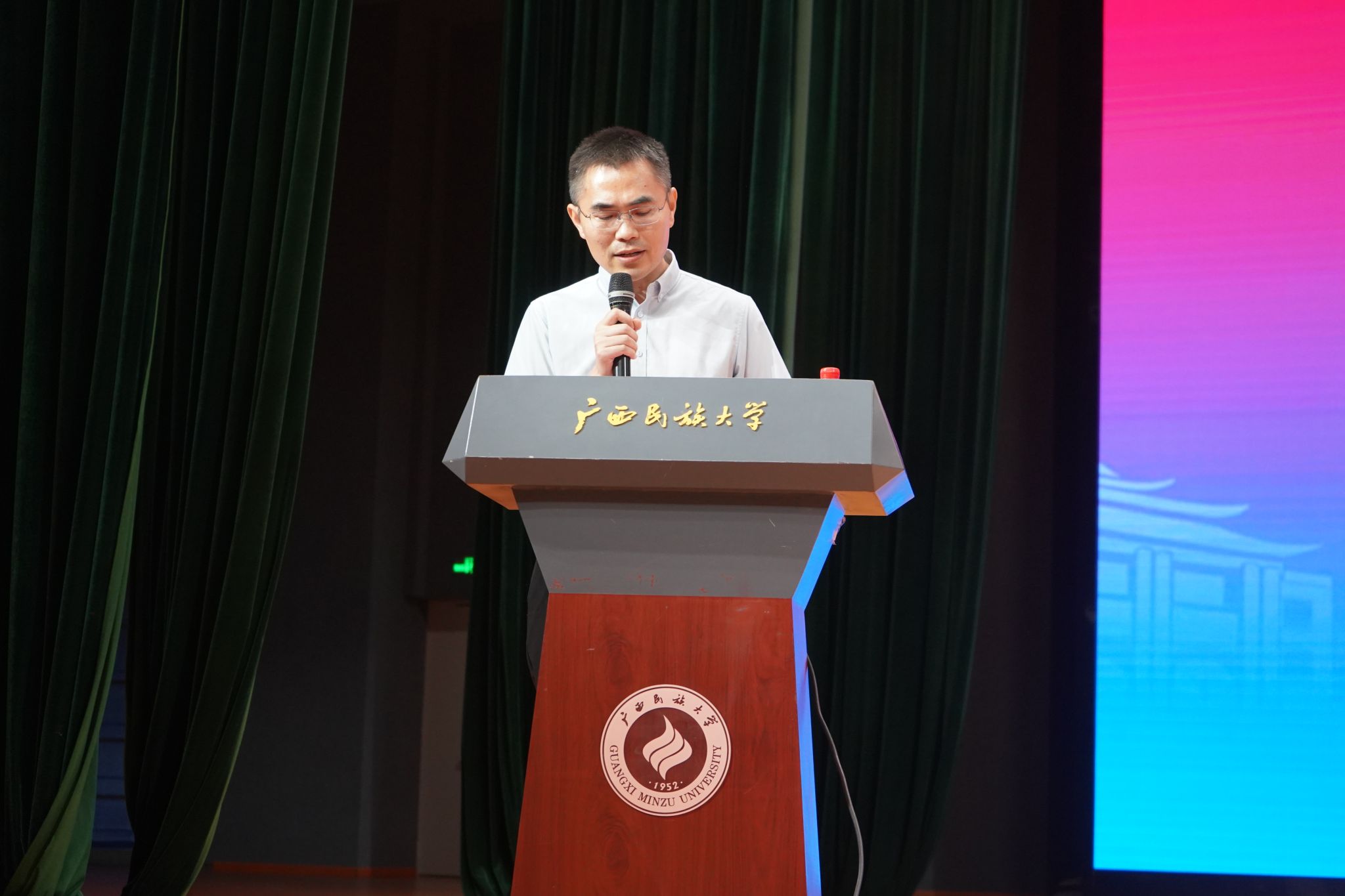院长刘绍刚以《化启新篇,工创未来》为题致辞。他从办学规模与师资队伍、学位点建设及办学层次等方面介绍了学院近年来的发展亮点,并强调了树立远大理想、培养自主学习与创新能力、注重品德修养和身心健康的重要性。呼吁新生珍惜大学时光,努力成为德智体美劳全面发展的卓越人才,为实现中华民族伟大复兴贡献力量。